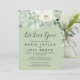 Esta suculenta tarjeta de invitación a la boda "deja que el amor crezca" es perfecta para un boda moderno. El diseño floral incluye un impresionante ramo botánico de suculentos acuarelas, flores y hojas verdes. Para obtener más opciones de texto de invitación a la boda, consulte la Colección completa de Bodas de Verdor Verde: https://www.zazzle.com/collections/119404304855416646