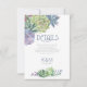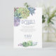 Fuentes únicas, suculentas coloridas a la acuarela y fondos brillantes en un suave azul polvoriento son los aspectos más destacados de estos productos de boda para combinar. Esta hermosa tarjeta de inserción de detalles de boda tiene una plantilla para editar la información pertinente para sus invitados y las iniciales de la novia y el novio y la fecha de la boda. Un patrón brillante y texturizado, en tonos claros y oscuros de azul polvoriento, agrega un fondo contrastante en el reverso. Busque ID515 para ver todos los productos coincidentes en este conjunto.