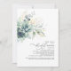 Vegetación acuática, suculentos de color verde salado y hojas de eucalipto dorado invitaciones a la ducha de novia