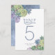 Invitación Suculentos y números de tabla de destello Azul ID5