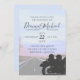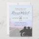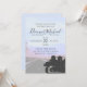 Una motocicleta con dos cascos se sienta en el atardecer de fondo de esta invitación nupcial para la pareja de ciclistas. Se puede personalizar fácilmente para adaptarlo a sus propias necesidades.