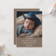 Invite a un padrino a los encantadores sueños de tu pequeño vaquero con esta imagen encantadora. Nuestro niño dormido, acolchado con lana de cordero, lleva una cubierta suave de pijama de denim adornada con delicado bordado. Un gorra de vaquero azul realza los sueños con su banda de cuero que le confieren un encanto rústico. A medida que tu pequeño vaquero sueña con el campo abierto, extiende esta invitación a un padrino especial que lo guiará a través de las aventuras del sueño.