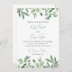 Bienvenidos a nuestra colección de invitaciones Eucalyptus Wedding, donde la elegancia se une a la naturaleza! Nuestros diseños cuentan con impresionantes hojas de eucalipto y delicados acentos botánicos, perfectos para parejas que adoran una estética serena y orgánica. Cada invitación es elaborada con esmero, combinando exuberante vegetación y suaves paletas de colores para crear un ambiente romántico. Con materiales de alta calidad y texto de personalizable, se puede añadir un toque personal a cada detalle. Invite a sus huéspedes a compartir su día especial con el encanto fresco y acogedor del eucalipto, una forma encantadora de marcar el tono de su celebración.