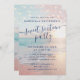 Una impresionante moda rosa y turquesa playa azul océano en la parte de la playa con focos de fuerza y con acentos rosa de hojas de palmera en un tema de verano dulce invitación de 16 años. Toda la redacción puede cambiarse para trabajar por cualquier edad de cumpleaños o celebración, y hay espacio en la parte trasera para ropa opcional, instrucciones o información de estacionamiento. Las fuentes tipográficas modernas de color azul marino destacan en el fondo de la playa suave, pero puede editar la plantilla fácilmente con el Editor de plantillas de herramientas de diseño.