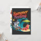 Das Design "Summer Feeling" bringt Spaß und Coolness perfekt auf den Punkt! Es zeigt einen lässigen Hai mit Sonnenbrille, der entspannt auf einem Liegestuhl sitzt und einen Drink genießt. Daneben ist ein fröhlicher Krebs zu sehen, der mit einem Donut in der Hand unter einem Sonnenschirm chillt. Im Hintergrund sorgt eine große Welle und eine strahlende Sonne für echtes Sommerfeeling.