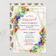 This fun and whimsical baby shower invitation features watercolor blueberries, strawberries, redberries and foliage on a gold geometric frame. The text combines handwritten script and serif fonts for a stylish and modern look. This is perfect for a summer rustic baby shower.