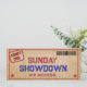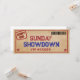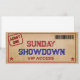 Get ready for the big game with this vintage-inspired "Sunday Showdown" football party invitation! Designed to look like an authentic admission ticket, this invite features distressed red and blue typography on a rustic, faux kraft paper background. Key details include a "VIP Access" headline, a classic "Admit One" stamp, and a decorative barcode. This design is perfect for hosting football watch parties, tailgate events, sports-themed birthday parties, or championship game gatherings.