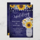 Este diseño boda incluye un jarrón de carnicero de carnicero lleno de girasoles y aliento de bebé sobre un fondo rústico de madera azul marino con luces de cuerda. Haga clic en el botón personalizar para obtener más flexibilidad en la modificación del texto. En nuestra tienda, zazzle.com/store/doodlelulu, se encuentran disponibles variantes de este diseño, diferentes tipos de papel y productos de coordinación. Contáctenos si necesita este diseño aplicado a un producto específico para crear su propio elemento de coincidencia único! ¡Muchas gracias por ver un DoodleLulu por el diseño de los bichos de 2 de junio!