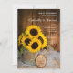 Invite a los huéspedes a una celebración en honor a la recién comprometida novia y novio para estar con la encantadora Invitación de la fiesta Sunflowers and Garden Watering Can Engagement. Esta rústica fiesta de compromiso de verano o otoño con el tema del rancho incluye una pintoresca fotografía floral de un ramo de flores amarillas en una lata de agua metalizado de plata, velo de novia blanco, pañuelo de lino vintage recortado y trozo de madera natural con la palabra AMOR quemado en ella con un fondo de madera de paja y madera marrón templada. Idea perfecta para la celebración casual del fiesta de granero. Disponible como invitación impresa para correo o como descarga digital para compartirla digitalmente.
