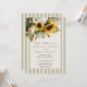 This sunflower wedding invitation suite blends rustic charm with refined elegance, creating the perfect first impression for a romantic countryside or garden celebration. Featuring a lush arrangement of golden sunflowers, delicate white florals, and soft greenery, this floral wedding invitation captures the warmth and joy of a summer or fall wedding. The natural botanical design paired with a muted sage green striped border and soft ivory background gives this invitation a timeless yet modern aesthetic that feels both inviting and elevated. The warm earthy color palette and organic floral details make this invitation ideal for sunflower weddings, rustic chic themes, barn weddings, vineyard celebrations, and elegant outdoor ceremonies.