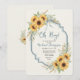 This charming baby shower design features warm yellow sunflowers, soft greenery, and a refined rustic frame on a light neutral background. Inspired by farmhouse and country aesthetics, it blends elegance with a cozy, welcoming feel—perfect for a fall or summer baby shower celebration. The balanced floral composition and soft color palette create a timeless look ideal for sunflower-themed events and nature-inspired décor lovers.