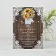 Invitación Sunflower Rustic Wood Lace Mason Jar Boda