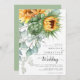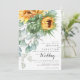 Los ruidosos girasoles otoñales caen en cascada por los lados, con detalles bodas que compensan la esquina inferior - elegante invitación rústica a la boda.
