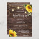 Invitación Sunflower Wood & Mason Jar String Lights Boda