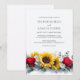 Invite your friends and loved ones to celebrate your union with this rustic sunflower and red rose floral wedding invitation. The customizable text allows you to effortlessly add the bride and groom’s names, wedding date, and the necessary details of your celebration. A variety of paper types and corner styles are available for your unique invitations, along with the option to download if you prefer a digital format.