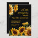 Hermosos girasoles rústicos amarillos en la invitación negra de cumpleaños número 60. Contáctame para obtener ayuda con tus personalizaciones o para solicitar productos adicionales de correspondencias o coordinación de Zazzle para tu celebración.