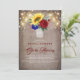 Flores de sol, rosas rojas burdeos rústico caen invitaciones a la ducha de novias.