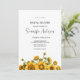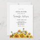 Hermosos y luminosos girasoles amarillos y hojas verdes. Invitación minimalista a la ducha de novia