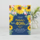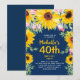 girasoles amarillos de colores brillantes y rosas rosadas en la invitación a la fiesta de 40 años azul marino para las mujeres. El texto es personalizable para cualquier edad, primavera o verano que pueda estar planeando. Agradable para un fiesta de cumpleaños o un picnic. Contáctame si puedo ayudarle con la personalización o si desea solicitar productos adicionales de correspondencias o de coordinación.