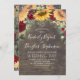 Respiro del bebé, margaritas, rosas rojas borgoñosas, girasoles rústico campo campestre otoño invitaciones de boda