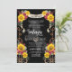 charro occidental hermoso tema rústico para quinceañera o celebración de cumpleaños. Este diseño presenta girasoles amarillos brillantes y ricas rosas rojas, sobre un fondo negro esmeralda de personalizable y acentos rústicos occidentales. ¡personalizable total para cualquier tipo de evento!