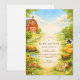 Celebrate a sweet new arrival with this charming farm-inspired baby shower design. Featuring a cozy red barn, winding country path, hay bales, sunflowers, apples, and friendly farm animals, this invitation captures the warmth of a peaceful countryside day. The soft painterly illustration and storybook feel make it perfect for a rustic, outdoor, or farm-themed baby shower. Fully editable so you can personalize all event details with ease.