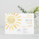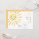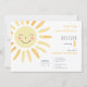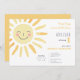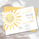 Haga que el cumpleaños de su hijo sea inolvidable con esta invitación temática moderna. El diseño presenta un ilustracion acuático de un sol amarillo, sobre un sencillo fondo blanco que lo hace divertido y encantador, mientras que la frase "Primer viaje alrededor del Sol" añade un elemento lúdico a la tarjeta. Utilice las herramientas de diseño para personalizar del texto, las fuentes y los colores. También disponible como descarga digital para evites.
