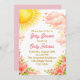 This invitation combines a warm sunshine theme with delicate floral details, creating a gentle and joyful look for a baby girl celebration.