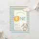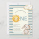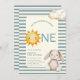 Celebrate your little one's special day with this adorable 'Our Little Sunshine' first birthday invitation! Featuring a cheerful watercolor sun and a sweet bunny, this design brings a touch of whimsical charm to your celebration. The soft blue and cream striped background creates a warm and inviting atmosphere, perfect for a baby boy or girl's milestone birthday party. Easily add your event details to invite your loved ones to join the fun as your little sunshine turns ONE!