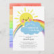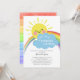 Un pequeño rayo de luz del sol invitación a la ducha bebé con el sol sonriente más lindo con un arcoiris para una ducha neutra para bebés. Voltea nuestra invitación para ver el arco iris acuático hacia atrás para un toque especial
