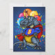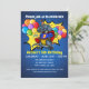Una superheroína de T-Rex con un gorra de cumpleaños está rodeada por un colorido estallido de confeti. Guay 5.º regalo de cumpleaños para tu niño de cinco años. Personalice y agregue el nombre y la información del fiesta de su hijo.