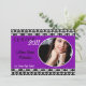 Esta Invitación 5x7 adorable elegante y Moda morada de fotos de Damask Black es a la vez de moda y moda. Está impreso en papel liso, vibrante y mate de 110 libras de peso. Contiene un 50% de contenido reciclado. Perfecto para sus invitaciones y invitaciones de eventos más formales. Estos vienen con sobres blancos estándar.