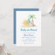 Bebé a bordo de la playa océano invitación a la ducha de bebé, diseño con acuarela de sol, arena, tablas de surf, bola de playa y palmeras en tonos blanco y azul marino. Perfecto para la ducha de bebé de verano, ducha de bebé hawiian, bebé a bordo, surf tema de ducha de bebé. puedes personalizar texto y color para tu diseño único y coincidir con otros artículos de nuestra colección como suministros y decoración de fiesta de ducha de bebé.