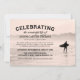 La celebración personalizada de las invitaciones a la vida es perfecta para informar a la familia y amigos de un funeral/servicio conmemorativo. Esta invitación cuenta con una playa nublada, el océano, un surfista y una celebración de la vida de plantilla que se puede personalizar fácilmente con tus propios arreglos.