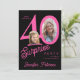 Trendy bold typography women's 40th birthday surprise party invitation with 2 photos and modern black and pink design in retro style script. Easy to personalize with your text and pictures.++++ Digital download available,