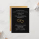Create an elegant, faux gold and black invitation with this surprise 50th wedding anniversary party invitation template. Add two photos to the back of the invitation for a lovely now and then photo invitation. Easily personalize this stylish black and gold party invitation by adding the couple's names, party date and time, location and other details you choose. All the modern, simple typography is editable. "Surprise 50th Anniversary Celebration" can be customized for any anniversary year. I created the two golden gradient hearts with impressions of buds and leaves for a botanical feel. The unique golden tan gradient hearts are nestled next to each other for a romantic touch. See my golden 50th wedding anniversary collection for matching party table decorations and favors. Create a beautiful memorable party to honor a life long commitment of love.