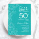 Invitación a los 50 Años Turquesa Floral Sorpresa. El diseño femenino moderno minimalista presenta acentos botánicos y tipografía. Sencilla tarjeta de invitación floral perfecta para una elegante celebración de cumpleaños sorpresa femenina.