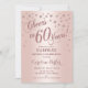 Sorpresa 60th Birthday Party Invitation Elegante diseño con falso oro rosa purpurina. Presenta el tipo de letra del guión y el perfil. ¡Salud a 60 años! Mándame un mensaje si necesitas una edad personalizado.