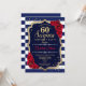 Sorpresa Invitación a los 60 Años. Diseño azul marino, blanco, rojo con oro falso purpurina. Presenta rayas marinas y blancas, rosas rojas, letra de guión y confeti. Perfecto para una elegante fiesta de cumpleaños. Se puede personalizar para mostrar cualquier edad. Mándame un mensaje si necesitas más personalización.