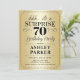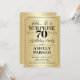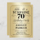 Sorpresa 70.ª Invitación a la fiesta de cumpleaños. Diseño sencillo y elegante en oro y negro. Con un patrón de Relieve metalizado de oro falso y un tipo de letra de guión elegante. Celebración sorpresa de cumpleaños para hombre o mujer. ¡Se puede personalizar en cualquier edad!