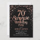 Sorpresa 70.ª Invitación a la fiesta de cumpleaños. Elegante diseño en oro rosa negro y falso purpurina. Presenta un diseño elegante de tipo de letra y letra de guión. Mándame un mensaje si necesitas edad personalizado.