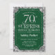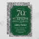 Sorpresa 70.ª Invitación a la celebración de cumpleaños. Elegante diseño de estilo elegante en verde oscuro de los bosques y falso patrón de plata purpurina. Presenta una fuente de script elegante. Mándame un mensaje si necesitas más personalización.