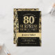 Sorpresa 80 cumpleaños fiesta invitación en negro y oro. Elegante carta de invitación con oro falso purpurina y diamantes. El diseño clásico es perfecto para un fiesta elegante. Por favor, envíame un mensaje si necesitas una edad personalizado.
