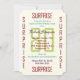 Esta invitación única para la fiesta sorpresa del cumpleaños número 80 es un boleto para una sorpresa de cumpleaños número 80. Las palabras sorpresa aparecen a ambos lados de la invitación y el número 80 aparece en el centro. Todos los detalles de la invitación pueden ser personalizados por usted para crear una invitación de un boleto de clase a una sorpresa de cumpleaños número 80. Copyright henishouseofpaper