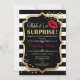 Invitación sorpresa de cumpleaños. Elegante diseño blanco negro con falso oro purpurina. Cuenta con un beso de labios rojos, rayas blancas negras, un confetti y un tipo de letra de guión. Perfecto para una elegante fiesta de cumpleaños. ¡Se puede personalizar en cualquier edad! Mándame un mensaje si necesitas más personalización.