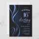Esta moderna invitación a los 16 años, de color negro y azul, es el tono perfecto para un fiesta sorpresivo. Personalice fácilmente su invitación con el nombre del invitado, los detalles del fiesta y la información del lugar en sólo unos pocos clics. Podrás crear una noche llena de amor, risas y recuerdos preciados que tus seres queridos apreciarán para siempre. Puede elegir entre una variedad de tipos de papel y estilos de esquina para crear una invitación única que se adapte a su gusto. Además, también tiene la opción de descargar la invitación si prefiere una versión digital.