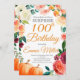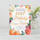 Sorpresa Calabazas de Otoño Invitación de Cumpleaños 100. El diseño se caracteriza por una decoración de bonito pintada en color agua con flores sobre un fondo rústico de madera acentuado por las luces de cuerda. Haga clic en el botón personalizar para obtener más flexibilidad a la hora de modificar el texto o mover los gráficos. Póngase en contacto con nosotros si necesita que este diseño se aplique a un producto específico para crear su propio elemento de coincidencia único.
