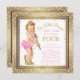 Chicas princesa invitación a la fiesta de cumpleaños número 4 con purpurina rosa y dorado y princesa de pelo ligero chica de cumpleaños usando zapatos de tacón y perlas de oro de moda en un confeti de bonito rosado y purpurina de oro y fondo de diamantes. Usted puede fácilmente personalizar esta invitación a la fiesta de cuarto cumpleaños de la princesa simplemente agregando sus detalles en el estilo de letra y color, y la redacción de su elección. También puede cambiar el color de fondo y el año. Se trata de un diseño impreso sin verdadero confeti, oro, purpurina, diamantes, etc.