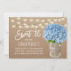 Invitación Sweet 16 Blue Hydrangea String ilumina Kraft rústi
