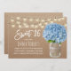 Kraft Azul Rústico Hydrangea Floral Jar Dulce 16 Invitaciones de Cumpleaños.